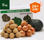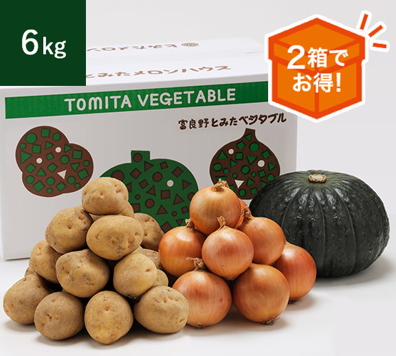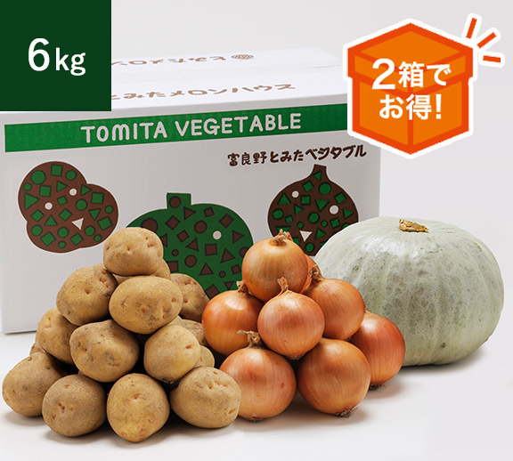 「栗じゃが」と呼ばれているねっとりした風味の「北あかり」、料理には欠かせない玉ねぎ、ホックホク感が楽しめるかぼちゃのセットです。