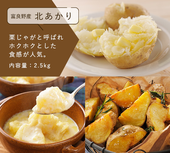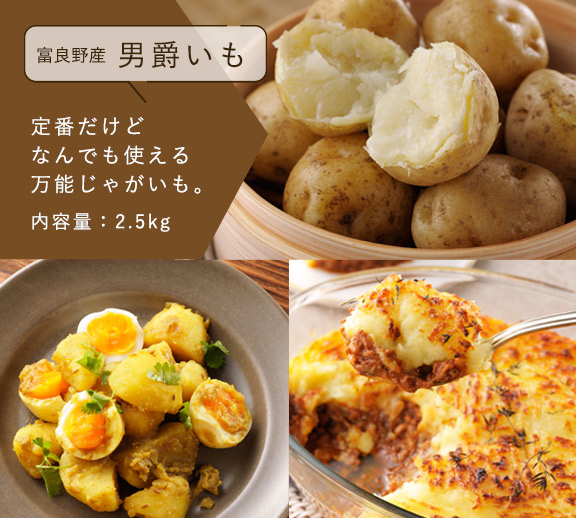 ホクホクとした食感で、粉吹きいもや、コロッケに適しています。