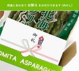★新鮮なまま食べて欲しいから配送方法にもこだわります! 鮮度を持続させるチルド発送にてできる限りおいしいままお客様の手元にお届けしています。鮮度保持袋(P-プラス)にお入れし、立てた状態でお届けできる専用箱で発送します。チルド発送のため「宅配ボックス」などにお入れすることが出来ません。不在時には、必ず不在票をご確認ください。 画像を拡大する ★私たちが朝もぎにこだわる理由! 早朝に収穫する一番の理由は、まだ気温が上がりきらない時間帯に収穫し、温度上昇を最小限に抑えるためです。収穫時の温度上昇は野菜たちにとって天敵なんです!低温のまま収穫し、冷たい湧き水で流水保管することで鮮度を保ったまま発送することができるのです。画像はホワイトアスパラの収穫風景です。すべて手作業で、アスパラに高く土を盛り日光を遮り、少しずつ土を掘り、一本ずつ丁寧に収穫します。 画像を拡大する ★おトクです! ふらのとみたアスパラガスは、送料+チルド料金込みの料金となっています。 ※ただし、沖縄県へのお届けにつきましては2kgまで700円加算となります。また、同時発送で同一お届け先の場合、2㎏ 9,990円なのでまとめて2㎏だと1,990円お得になります!!☆グリーンアスパラ(露地)1㎏+グリーン&生ホワイトアスパラ1㎏の合計2㎏での組み合わせでもお安くなります! 画像を拡大する ★期日指定は不可とさせていただいております! 天候でその日の収穫数が変わりますので、誠に勝手ながら期日指定は不可とさせていただいております。平日お届け・休日お届け・時間指定は可能な限り対応いたしますので、ご希望のお客様は「お届け先・商品情報指定ページ」にてご指定下さい。 収穫できる数が限られているためサイズにバラつきがあります。 冷蔵便で発送いたしますので、アスパラガス以外の商品とは同梱できません。