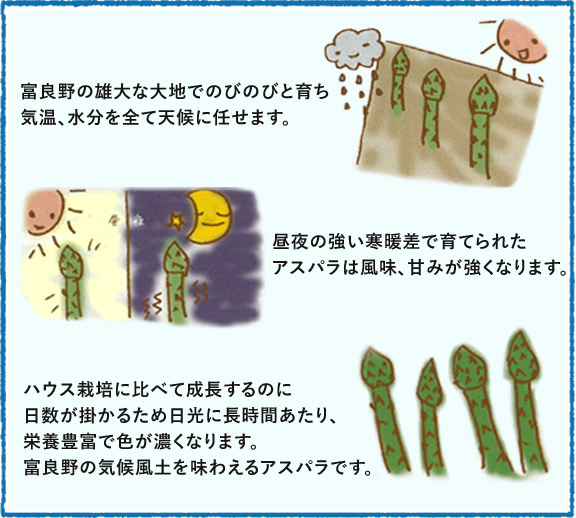 ★新鮮なまま食べて欲しいから配送方法にもこだわります! 鮮度を持続させるチルド発送にてできる限りおいしいままお客様の手元にお届けしています。鮮度保持袋(P-プラス)にお入れし、立てた状態でお届けできる専用箱で発送します。チルド発送のため「宅配ボックス」などにお入れすることが出来ません。不在時には、必ず不在票をご確認ください。 画像を拡大する ★私たちが朝もぎにこだわる理由! 早朝に収穫する一番の理由は、まだ気温が上がりきらない時間帯に収穫し、温度上昇を最小限に抑えるためです。収穫時の温度上昇は野菜たちにとって天敵なんです!低温のまま収穫し、冷たい湧き水で流水保管することで鮮度を保ったまま発送することができるのです。画像はホワイトアスパラの収穫風景です。すべて手作業で、アスパラに高く土を盛り日光を遮り、少しずつ土を掘り、一本ずつ丁寧に収穫します。 画像を拡大する ★おトクです! ふらのとみたアスパラガスは、送料+チルド料金込みの料金となっています。 ※ただし、沖縄県へのお届けにつきましては2kgまで700円加算となります。 また、同時発送で同一お届け先の場合、2㎏ 9,790円なので まとめて2㎏だと1,190円お得になります!!(別々に購入→グリーン1kg 4,990円、グリーン&ホワイト1kg 5,990円で合計 10,980円) 画像を拡大する ★期日指定は不可とさせていただいております! 天候でその日の収穫数が変わりますので、誠に勝手ながら期日指定は不可とさせていただいております。平日お届け・休日お届け・時間指定は可能な限り対応いたしますので、ご希望のお客様は「お届け先・商品情報指定ページ」にてご指定下さい。 収穫できる数が限られているためサイズにバラつきがあります。 冷蔵便で発送いたしますので、アスパラガス以外の商品とは同梱できません。