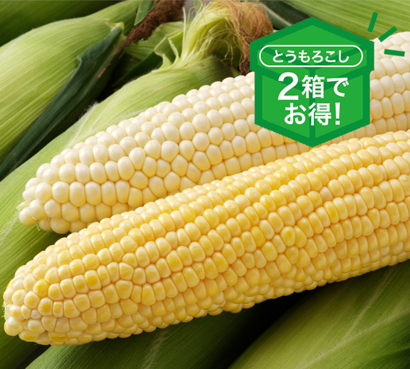 甘く果皮が柔らかい黄色いとうもろこし、シャキシャキの食感とフルーツにも劣らない甘さの貴重な白いとうもろこしを贅沢にお召し上がりください。