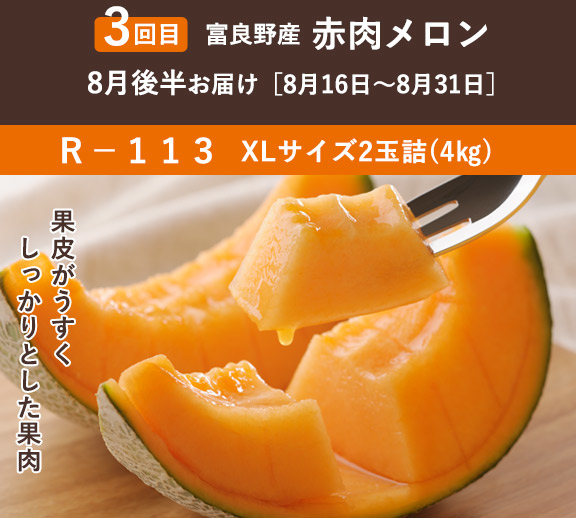 旬の美味しい3種類の赤肉メロンが定期的にご家庭に届くうれしいコースです!